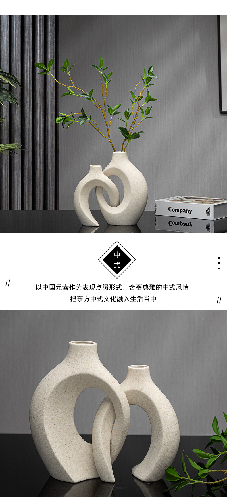 现代简约创意陶瓷花瓶摆件客厅