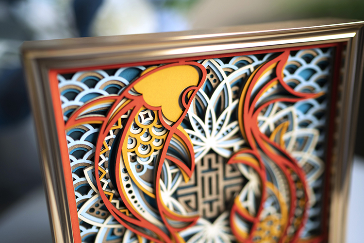 梯木叠雕招财锦鲤客厅玄关电视柜酒柜装饰