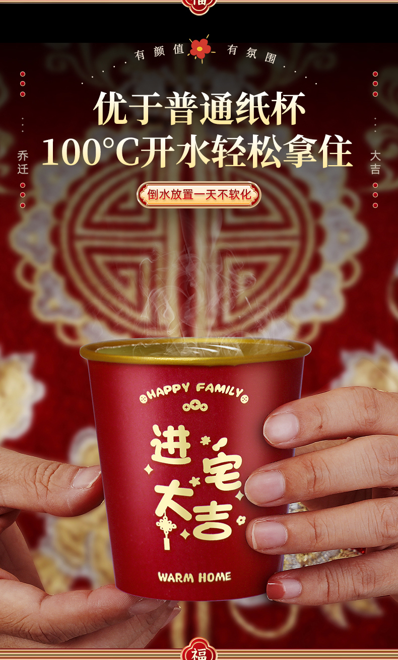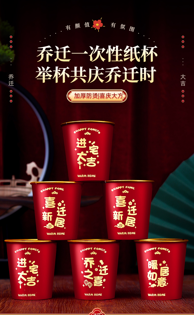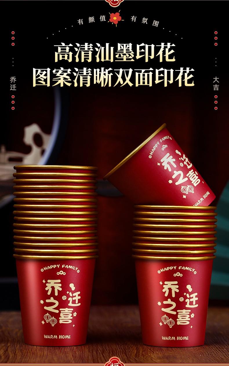 乔迁之喜纸杯新居搬家入宅仪式加厚一次性红色高档金箔水杯子