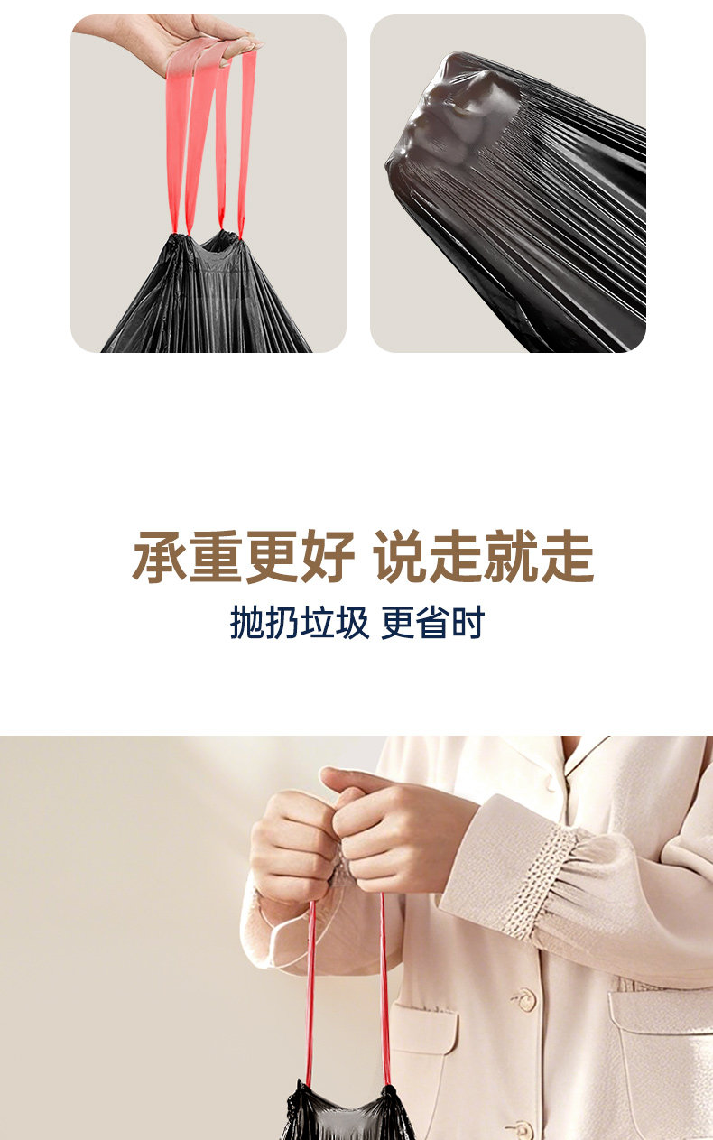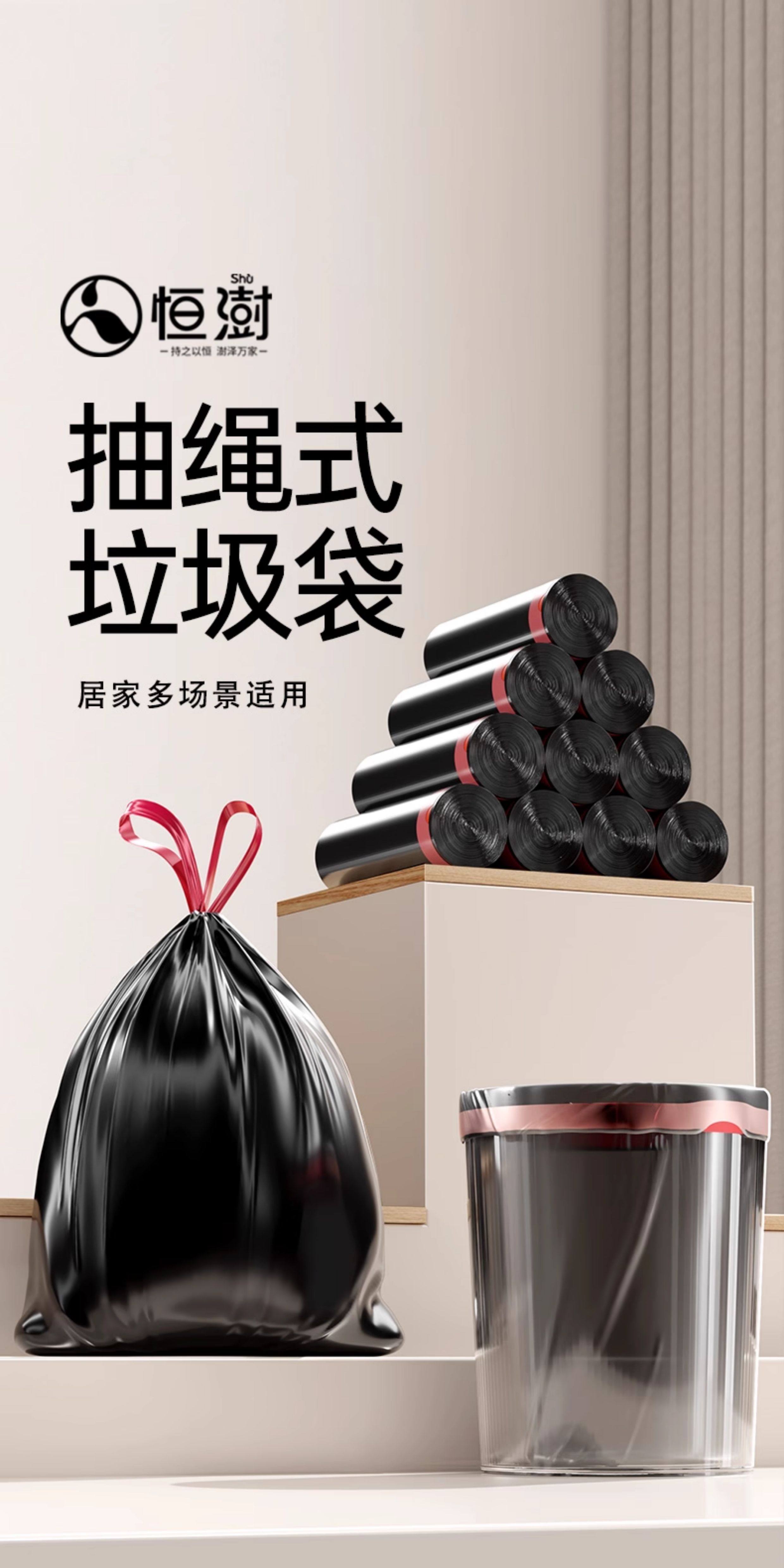 抽绳式加厚垃圾袋家用客厅手提式塑料袋大号