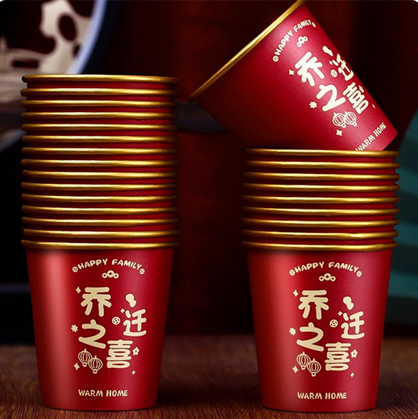 乔迁之喜纸杯新居搬家入宅仪式加厚一次性红色高档金箔水杯子