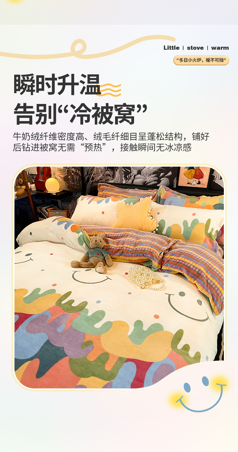 冬季加厚牛奶绒四件套