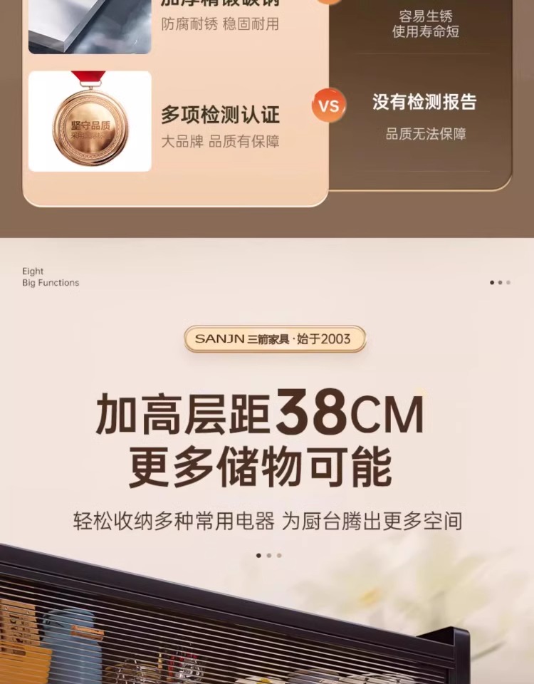 三箭厨房置物架落地多层收纳柜子