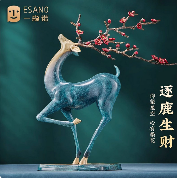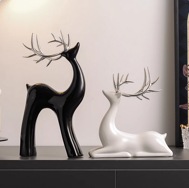 创意水晶球陶瓷鹿摆件轻奢客厅