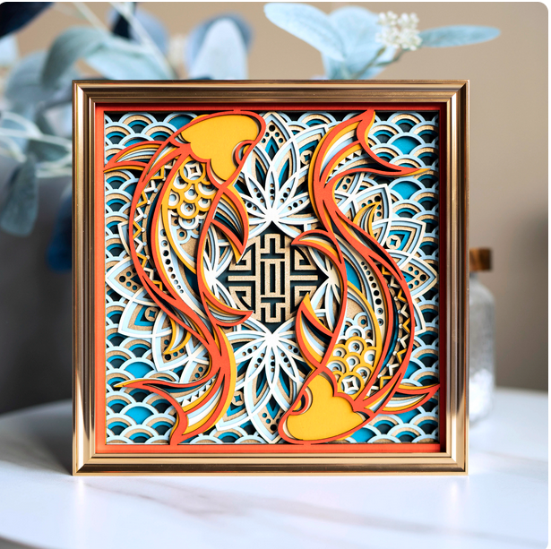 梯木叠雕招财锦鲤客厅玄关电视柜酒柜装饰