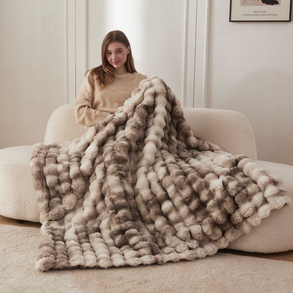 出口新品泡泡兔毛绒小盖毯