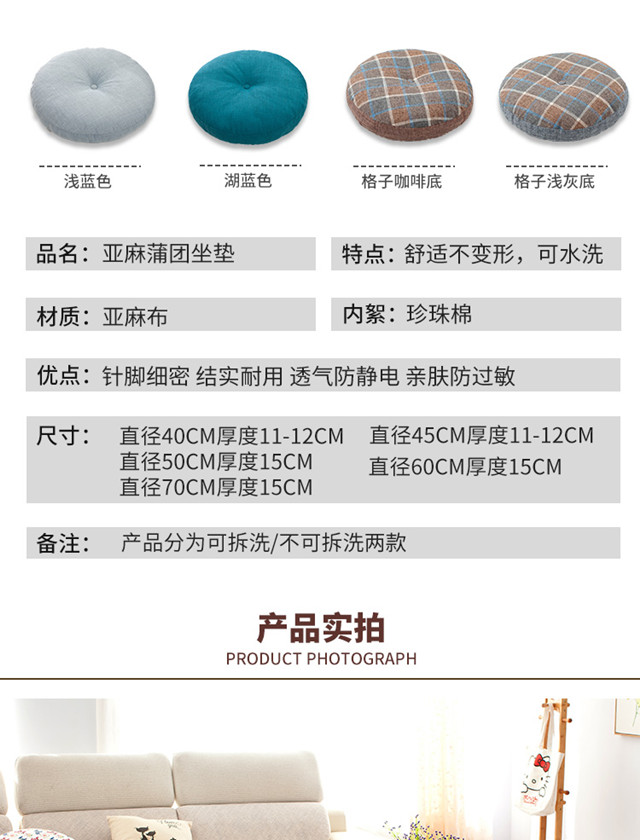 棉麻蒲团坐垫加厚布艺圆形日式阳台飘窗