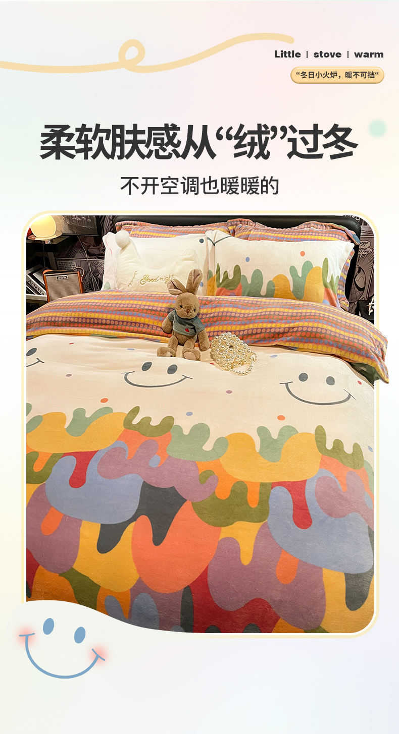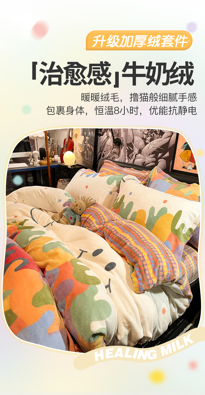 冬季加厚牛奶绒四件套