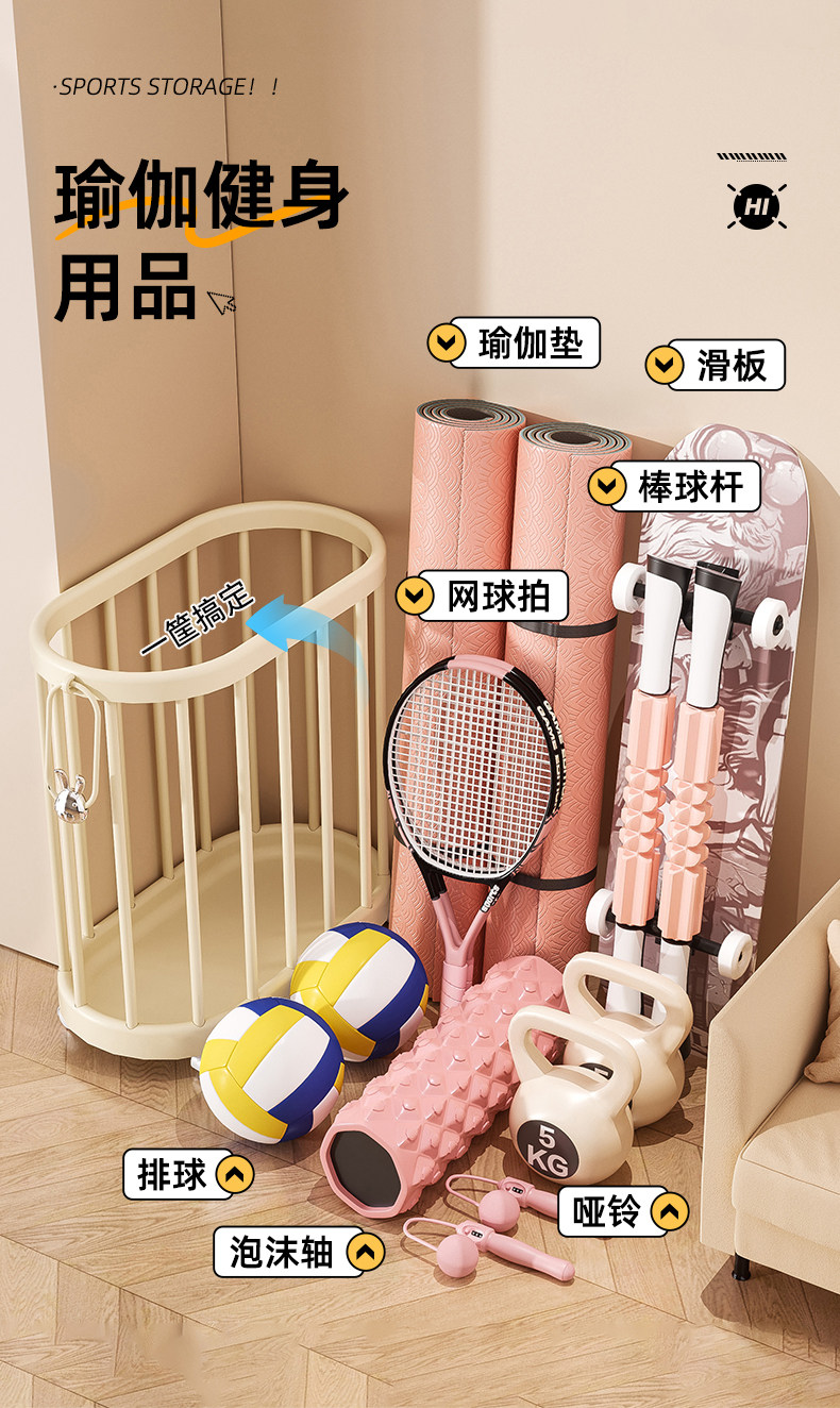 瑜伽垫收纳筐家用运动工具篮球类体育用品